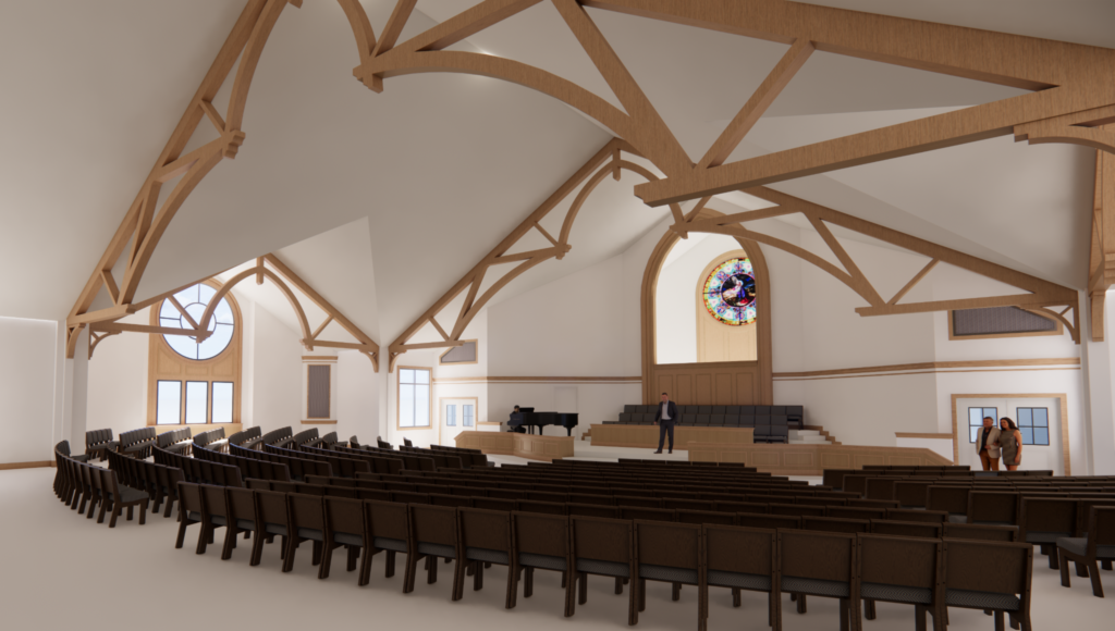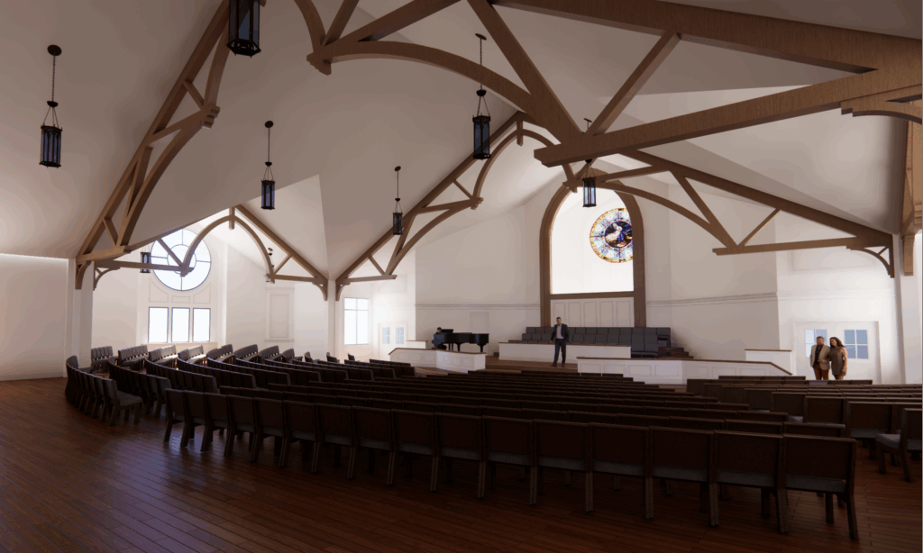- Phase 1b - Building (August 2025 – August 2026): Full construction of the sanctuary building and surrounding features. This is the first step in vertical construction for our master planning, which will include four total buildings connected together (see master plan image below).